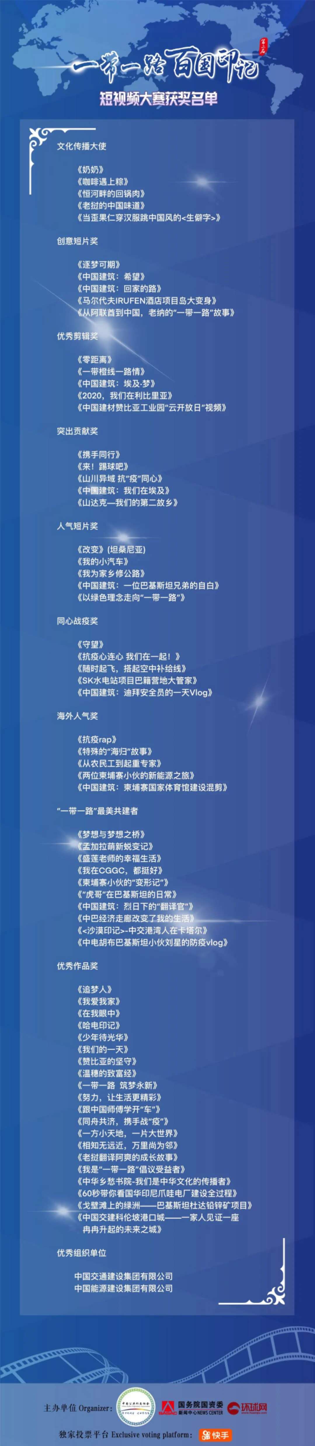 近日,由中國公共外交協(xié)會、國務(wù)院國資委新聞中心和環(huán)球網(wǎng)聯(lián)合主辦的第二屆“一帶一路”百國印記短視頻大賽獲獎(jiǎng)名單揭曉,中國兵器工業(yè)集團(tuán)北方公司兩部作品獲獎(jiǎng),其中《一帶橙線一路情》榮獲“優(yōu)秀剪輯獎(jiǎng)”,《溫穗的致富經(jīng)》榮獲“優(yōu)秀作品獎(jiǎng)”。 《一帶橙線一路情》 《一帶橙線一路情》講述的巴基斯坦拉合爾橙線軌道交通項(xiàng)目是“一帶一路”倡議下中巴經(jīng)濟(jì)走廊首個(gè)簽約的基礎(chǔ)設(shè)施項(xiàng)目,也是巴基斯坦第一條城市軌道交通項(xiàng)目。橙線項(xiàng)目建設(shè)和實(shí)施過程中,北方國際廣泛運(yùn)用中國標(biāo)準(zhǔn)、中國技術(shù)、中國裝備,高質(zhì)量的設(shè)計(jì)和建設(shè)得到了巴方合作伙伴的高度贊譽(yù),被拉合爾當(dāng)?shù)厥忻裼H切稱為“來自中國兄弟的一份厚禮”。 《溫穗的致富經(jīng)》 《溫穗的致富經(jīng)》聚焦隨著緬甸萊比塘銅礦開發(fā)不斷深入,萬寶礦產(chǎn)推出“社區(qū)社會發(fā)展”計(jì)劃并施行了一系列惠民政策,幫助吳溫穗這名普通當(dāng)?shù)卮迕耖_起了擁有7.5萬只蛋雞的現(xiàn)代化養(yǎng)殖場。如今的吳溫穗,儼然成為了率先致富的農(nóng)村企業(yè)家。吳溫穗深信,項(xiàng)目不僅讓村民過上了以往不敢想的好日子,更教會了他們致富之道,項(xiàng)目和村民的未來都會更加美好。 本屆大賽獲得了眾多參與“一帶一路“發(fā)展建設(shè)的大型企事業(yè)單位及個(gè)人的響應(yīng),共征集了來自近80個(gè)國家的500余部參賽作品。經(jīng)過公眾投票與專家評審的兩輪角逐,本屆大賽最終評選出文化傳播大使獎(jiǎng)、創(chuàng)意短片獎(jiǎng)、優(yōu)秀剪輯獎(jiǎng)、突出貢獻(xiàn)獎(jiǎng)、人氣短片獎(jiǎng)、同心戰(zhàn)疫獎(jiǎng)、海外人氣獎(jiǎng)各5名,“一帶一路”最美共建者 10名,優(yōu)秀組織單位 2個(gè),優(yōu)秀作品獎(jiǎng)20名。