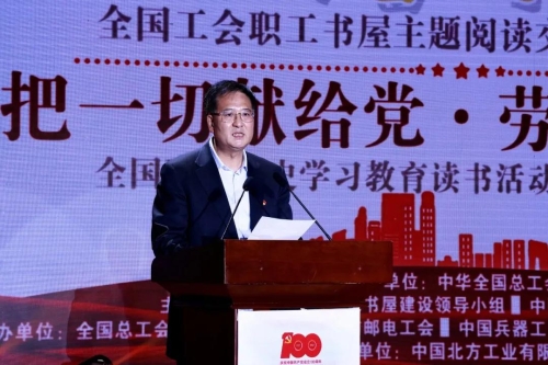 活動由全總宣教部、中國國防郵電工會、中國兵器工業(yè)集團有限公司黨群工作部、中國工人出版社共同承辦,中國北方工業(yè)有限公司協(xié)辦。來自中華全國總工會、全國工會職工書屋建設(shè)領(lǐng)導(dǎo)小組成員、部分全國工會職工書屋公益代言人,各全國產(chǎn)業(yè)工會、全總各部門負責(zé)同志,部分省市總工會副主席、宣教部長,兵器工業(yè)集團一線勞模工匠、職工代表等參加活動。 |