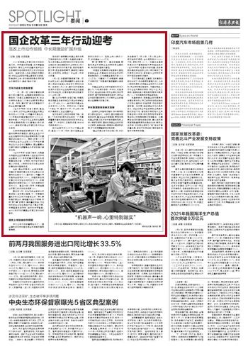 人民網(wǎng):“國(guó)企改革三年行動(dòng)”系列報(bào)道——三項(xiàng)制度改革進(jìn)一步走深走實(shí) 國(guó)有企業(yè)活力動(dòng)力明顯增強(qiáng)