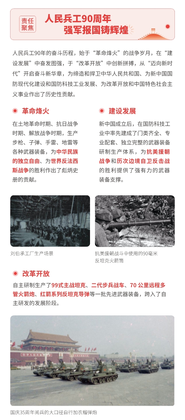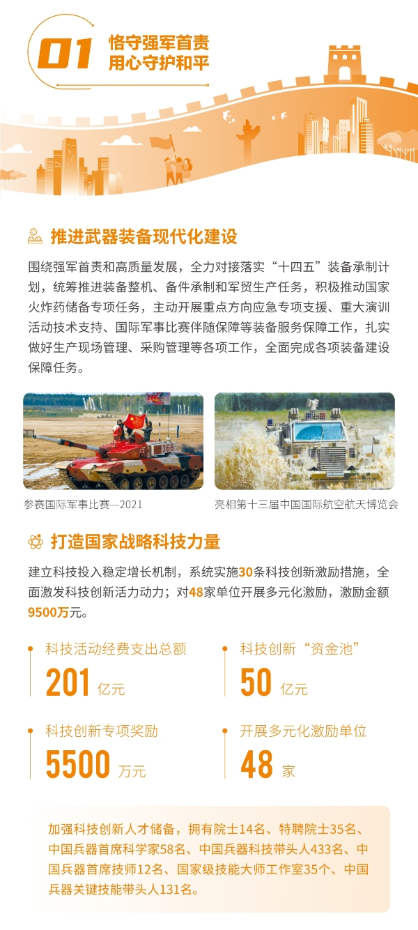 近日,兵器工業(yè)集團正式發(fā)布第十三份年度社會責任報告——《中國兵器工業(yè)集團有限公司2021年社會責任報告》,以“用心守護和平、用力爭創(chuàng)一流、用情溫暖社會”為主題,從恪守強軍首責、服務經濟建設、共創(chuàng)美好生活三個維度,向社會全面披露2021年度履責實踐和履責業(yè)績?!秷蟾妗愤B續(xù)第三年獲得中國企業(yè)社會責任報告評級專家委員會“五星佳”評級,兵器工業(yè)集團成為軍工行業(yè)唯一連續(xù)11年獲得五星及五星佳最高評級的企業(yè)。 一圖解碼兵器工業(yè)的“責任力量” |